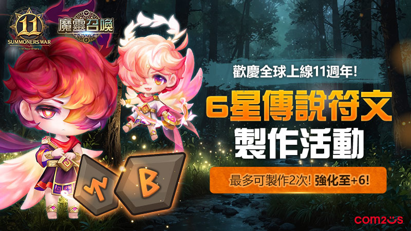 萬眾期盼的 6 星傳說符文製作活動重磅回歸,活動期間內使用 11 週年紀念紋樣即可製作 2 個 6 星傳說符文,自選符文類型、符文編號以及符文主屬性,除此之外,還能免費強化至 +6,並變更副屬性數值直到滿意為止,現在就打造你的專屬頂級神符!