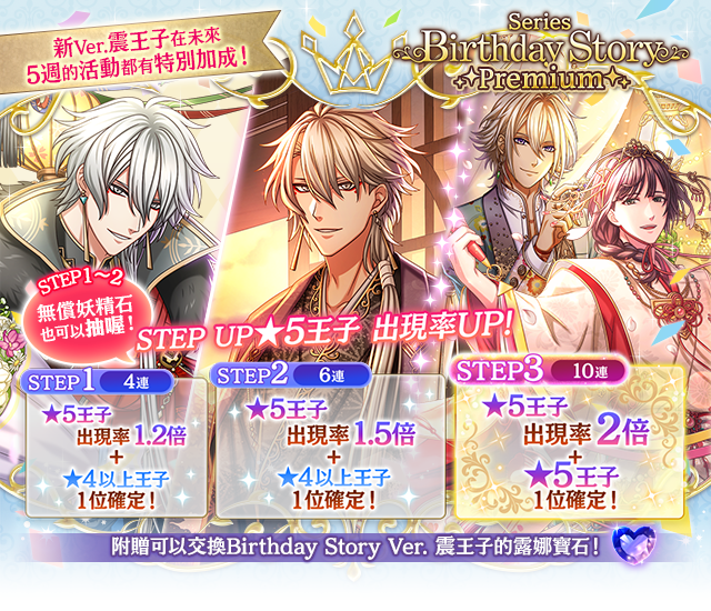 活動期間進行進行「Series Birthday Story」王子召喚,將有機會遇見 Story Series 系列限定王子唷!