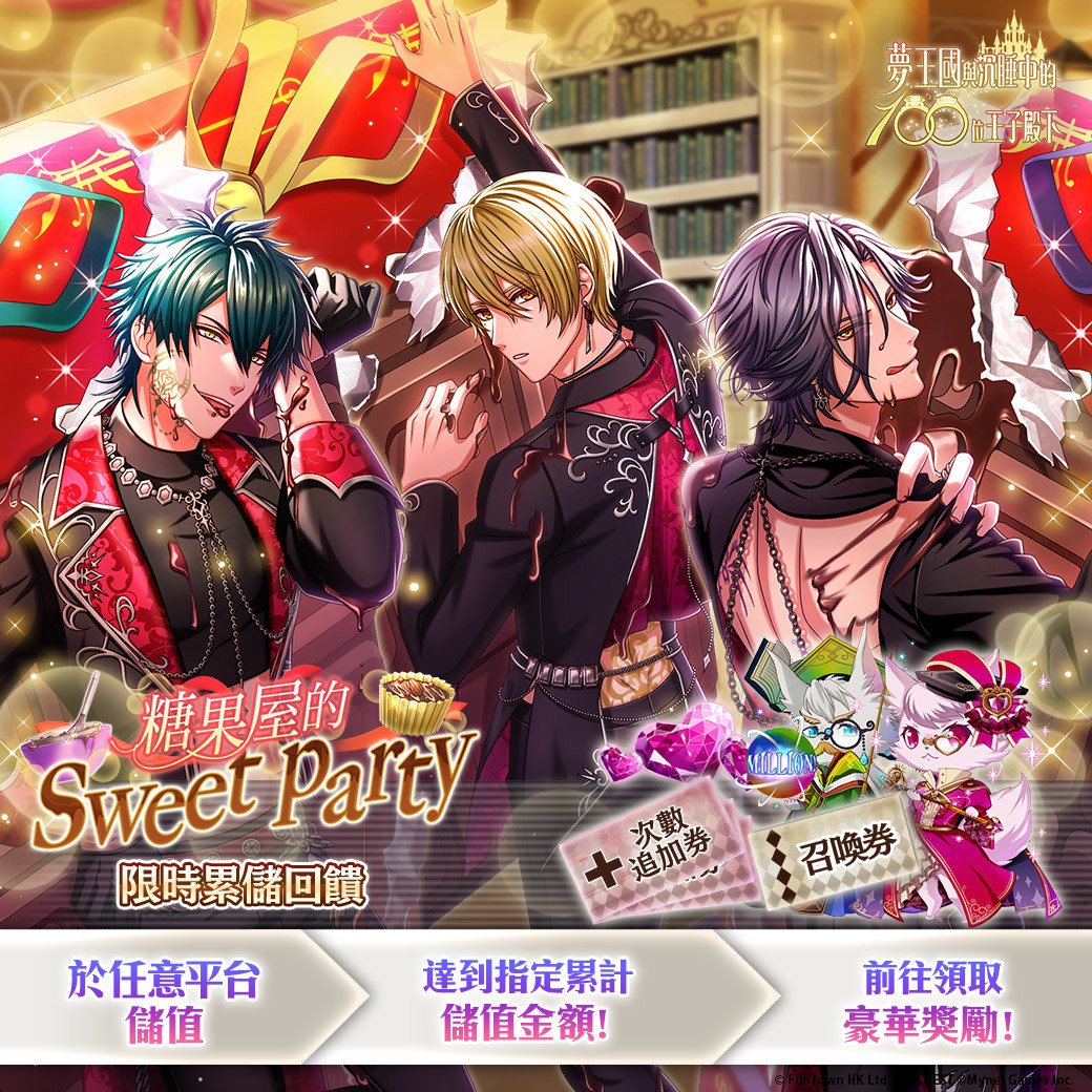 和信超媒體戲谷分公司代理戀愛養成手遊《夢王國與沉睡中的100位王子殿下》(以下簡稱《夢100》)繁中版,今日宣布全新活動「糖果屋的 sweet party」正式登場,完成活動任務即可獲得帥氣的活動限定王子!