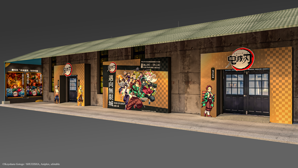 快閃店主視覺以劇場版無限城篇的全新角色圖素進行設計,以炭治郎為首的鬼殺隊眾人,齊心揮動手中武器迎向無限城決戰,在快閃店外牆也特別設計了大型主視覺拍照牆,要讓大家一起留下邁向無限城的紀念合照。進入快閃店前,則是由炭治郎、善逸和伊之助,在入口拱門前一起迎接所有喜愛《鬼滅之刃》的粉絲朋友。