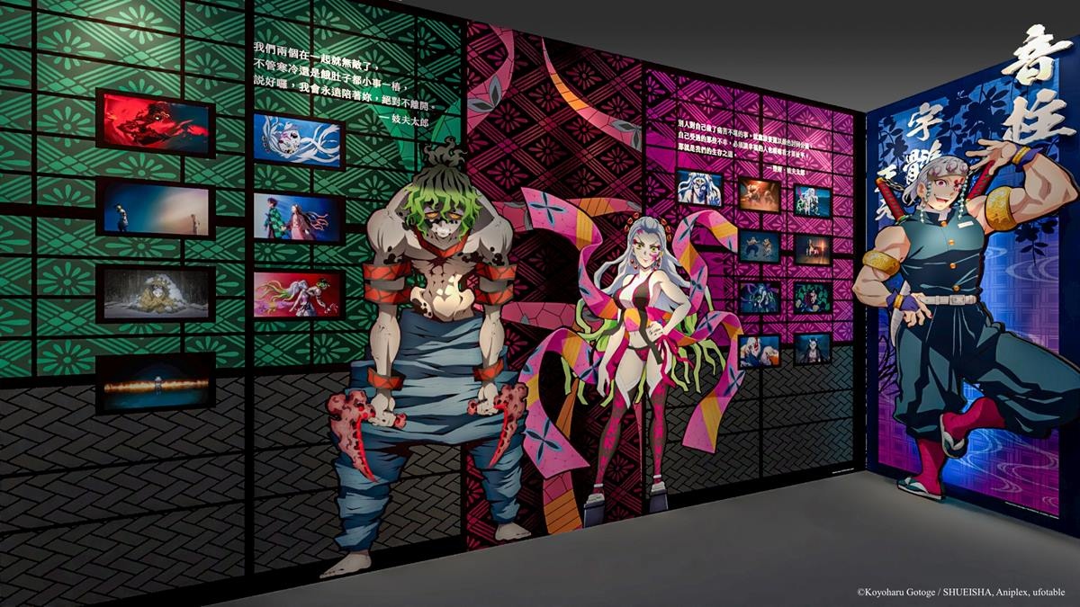穿過入口拱門後,是《竈門炭治郎立志篇》、《無限列車篇》、《遊郭篇》、《刀匠村篇》及《柱訓練篇》各季動畫的專屬區域,除了再次感受故事魅力,還可以透過各段經典台詞與場景圖,重溫劇情中的熱血與感動。作為最終決戰舞台的「無限城」,在這次快閃店中也將以獨立空間及商售區揭露部分面貌,而作品中鬼殺隊戰力最高指標的九柱們也全員到齊,以等身比例在各展區中歡迎大家的到來。