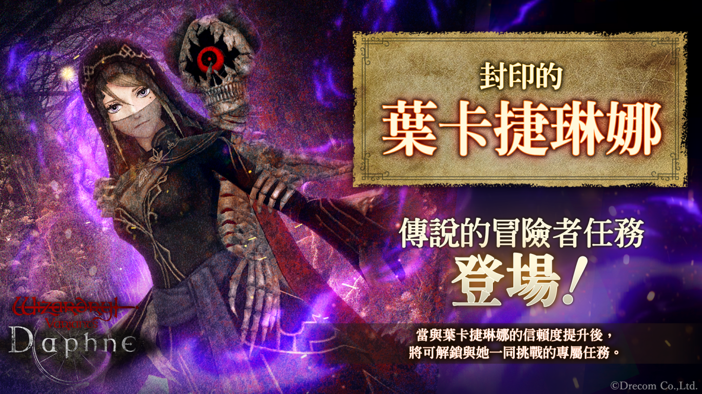 日本 Drecom 宣布,《Wizardry》系列最新作 3D 地下城 RPG《Wizardry Variants Daphne》於 2025 年 6 月 12 日(四)起,舉辦各式活動,包括新傳說中的冒險者「幸運的鴉導師奧爾德里克」的登場、特別補給品、期間限定任務等多項活動。此外,也正式開設《Wizardry Variants Daphne》繁體中文版的官方 Facebook 專頁。