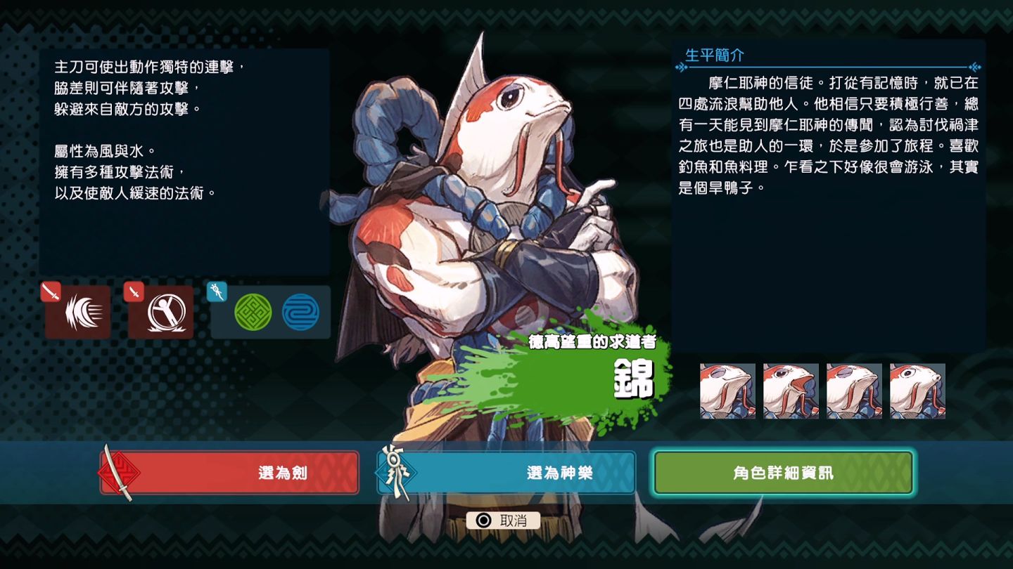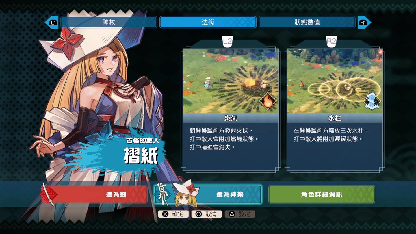 不過,光是單一角色就有可擔任前鋒的「劍」以及隨行的「神樂」兩種職位,劍職才擁有雙刀可以切換與居合,,神樂職主要是以神杖施展術法為主。