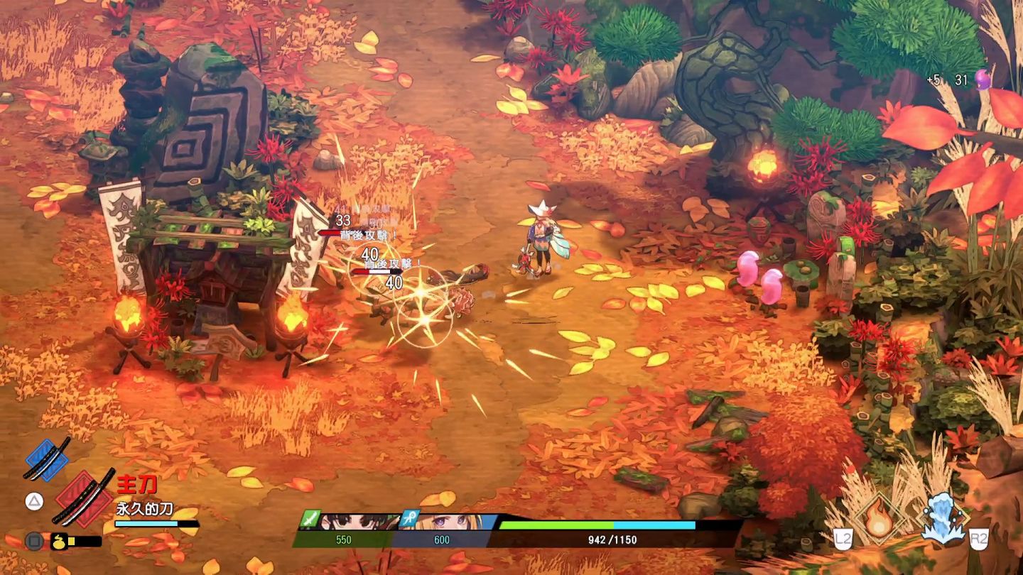 玩家將從祈願者之中選出 2 位,進入俯瞰視角的迷宮,於道中掃蕩區域內的敵人,戰鬥中使用刀都會有耐久度損耗的問題,當損耗殆盡時,可以按下居合來換刀,平常也能將居合當作攻擊手段銜接,此外遊戲有強調「背後攻擊」的特性,鼓勵玩家衝刺到敵人後方進行攻擊。
