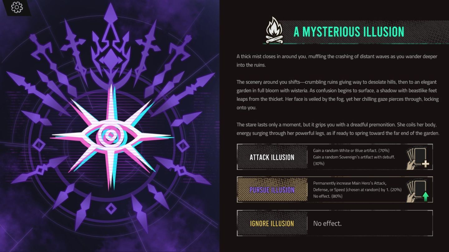 玩家在事件中的選擇不僅會影響獲得的資源,也將對該英雄的最終結局產生作用。開發團隊表示,遊戲中的故事劇情均可跳過,讓偏好玩法的玩家與偏好故事的玩家都能有合適的遊戲體驗。