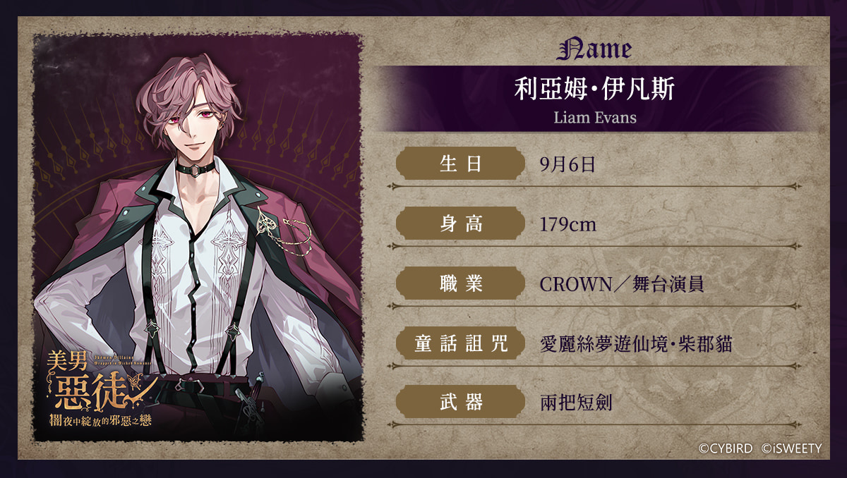同時,今(13)日官方同步公開九位惡徒個人檔案,帶領玩家更深入了解這場禁忌之戀背後,每一位「惡徒」的人物設定!