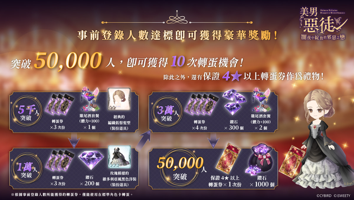 iSWEETY 代理的全新乙女向戀愛手遊《美男惡徒-闇夜中綻放的邪惡之戀》,事前登錄活動持續進行中,尚未參加的玩家,千萬別錯過這次搶先參與的機會。