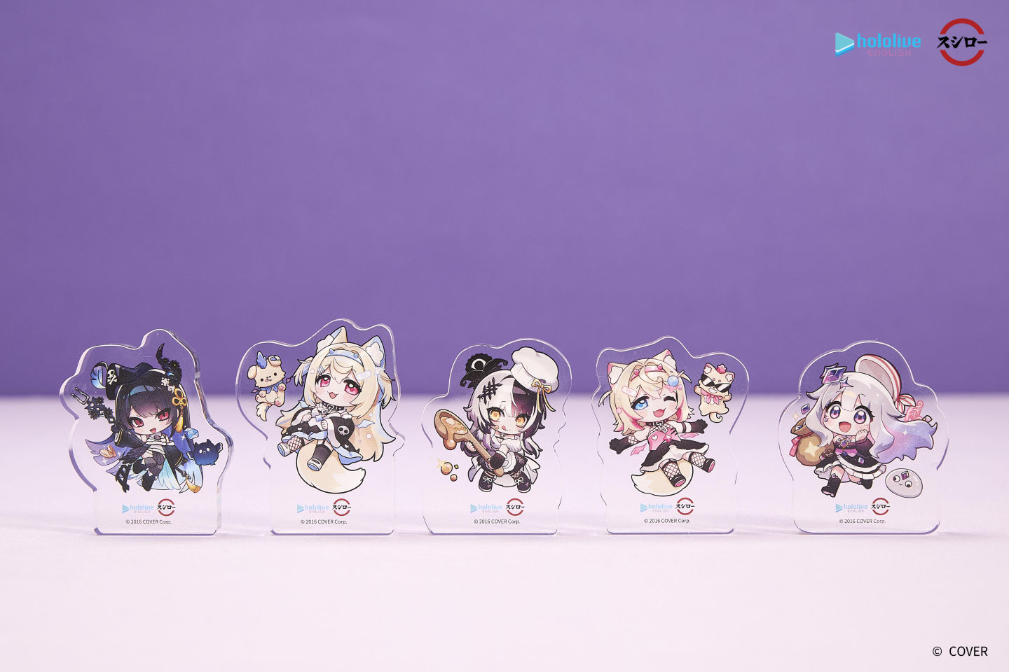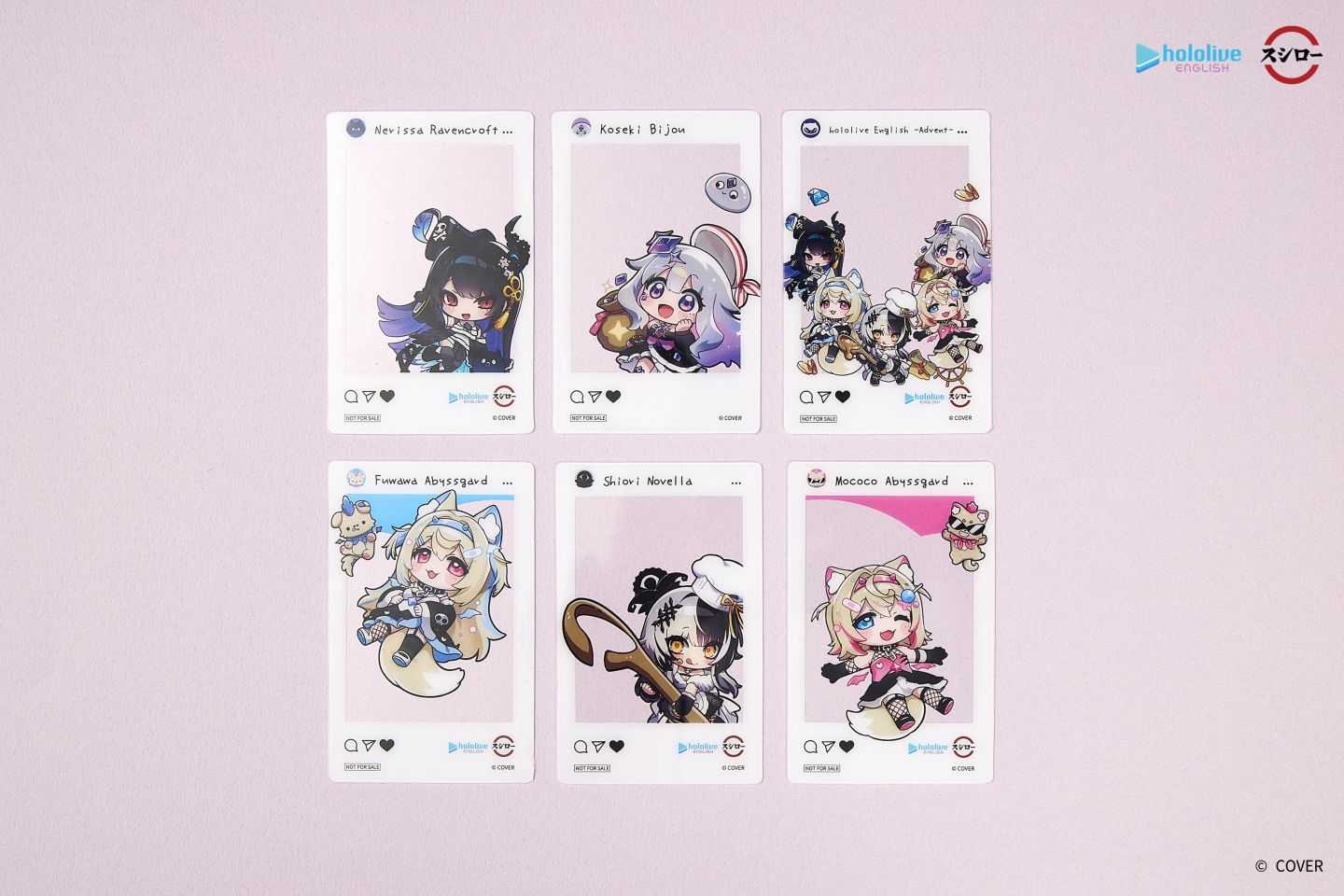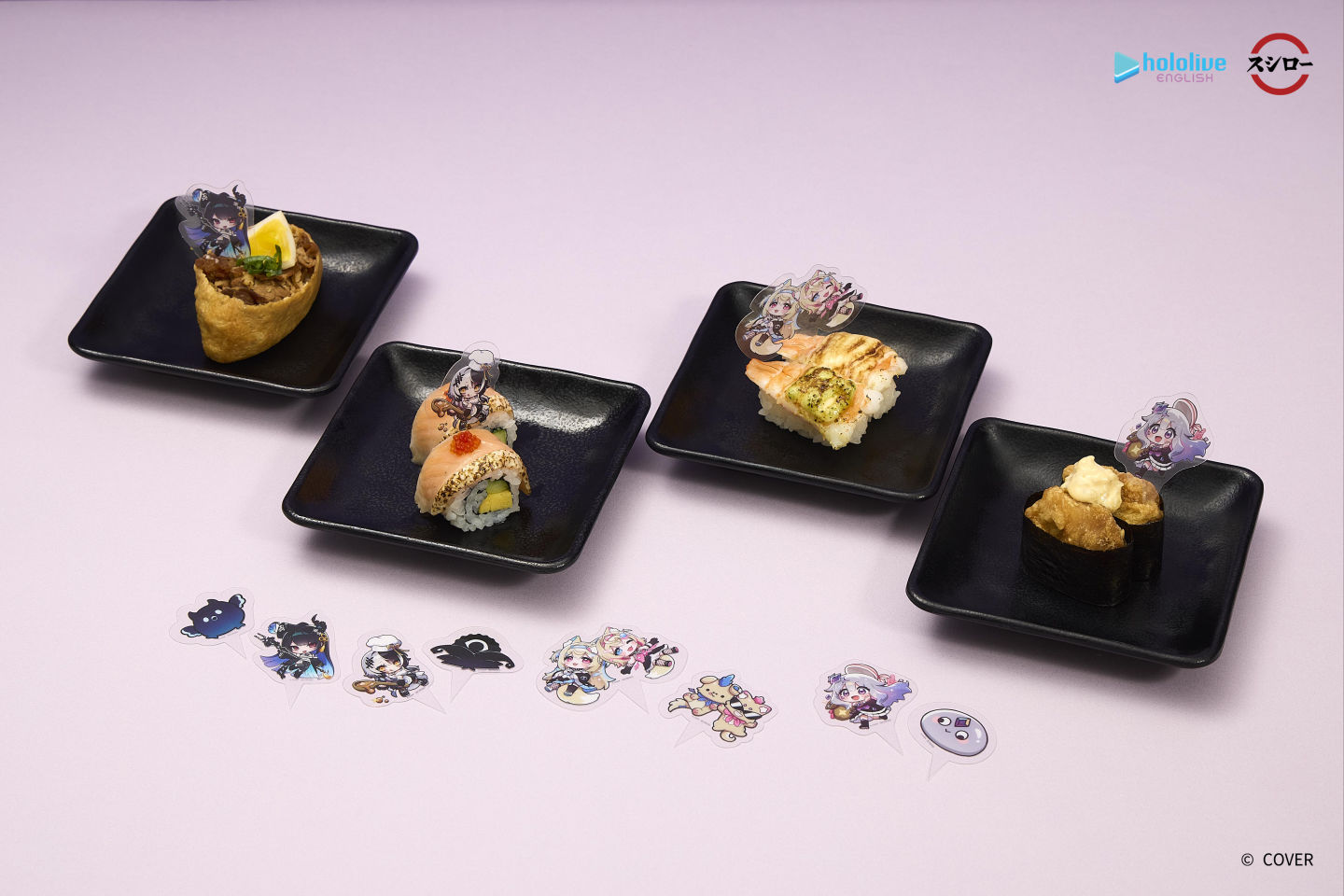 自6月16日起,全台壽司郎門市將推出4款聯名主題餐點,這些餐點的設計靈感源自《hololive English -Advent-》成員的設定。凡於店內點購任一聯名餐點(每份新台幣100元),即可獲得「角色插卡」1張與「盲袋胸章特典」1份。角色插卡共有8款(每位成員各2款角色款與粉絲款),盲袋胸章共計12款,皆採隨機出貨。此特典全台限量40萬份,售完為止。