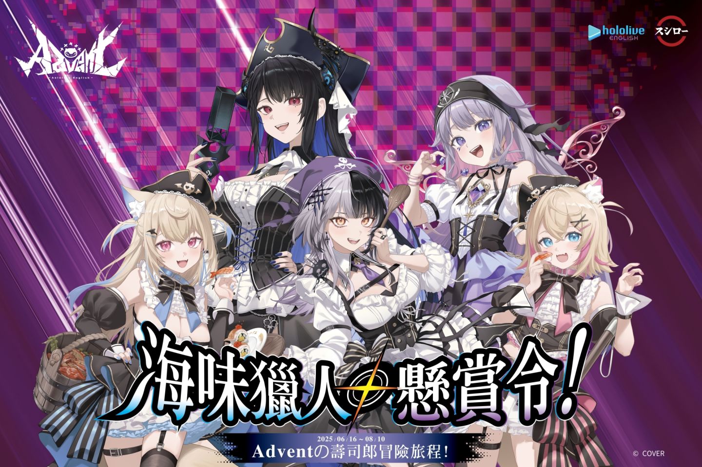 台灣壽司郎宣布將與 VTuber 團體「hololive English -Advent-」合作,自 6 月 16 日起至 8 月 10 日止,推出為期 55 天的聯名企劃。此次合作將涵蓋聯名餐點、周邊商品、主題門市,以及相關加碼抽獎活動。在正式活動啟動前,壽司郎將於 13 日晚間 8 點,在台北西門町屈臣氏武昌門市前廣場電視牆預先公開《hololive English -Advent-》的專屬畫面。
