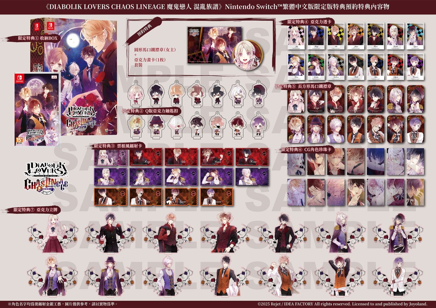 Joyoland 宣佈,Idea Factory 旗下乙女遊戲品牌「Otomate」及 Rejet 社共同開發製作的人氣系列遊戲《Diabolik Lovers 魔鬼戀人》系列作品最新作《Diabolik Lovers Chaos Lineage 魔鬼戀人 混亂族譜》,即將於 2025 年 8 月 14 日推出繁體中文版。