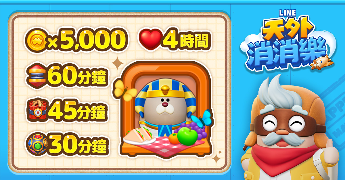 為了歡慶上線並感謝玩家們的熱烈支持,《LINE 天外消消樂》將限時發送上線慶祝特別獎勵給全體玩家!獎勵內容包含「金幣×5,000+愛心 4 小時+火箭 60 分鐘+炸藥 45 分鐘+雷射球 30 分鐘+上線紀念特別頭像+上線紀念特別外框」等眾多好禮,把握時間前往遊戲領取獎勵吧!