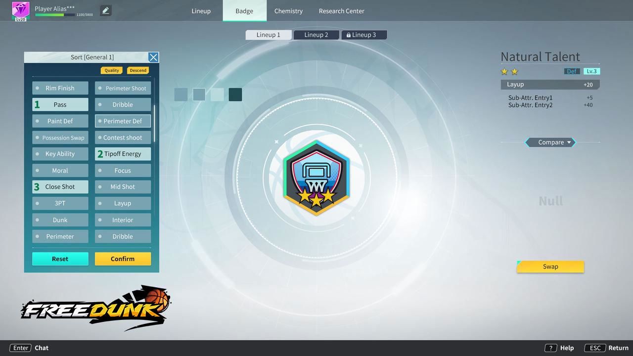 透過參與戰隊模式的比賽,玩家可獲得戰隊經驗值,提升戰隊等級,進一步解鎖更多陣容欄位,強化整體戰術深度。同時,戰隊系統導入「徽章養成」機制,徽章分為進攻、組織與防守三種類型,可裝備至戰隊專屬槽位中,進一步強化球員能力。