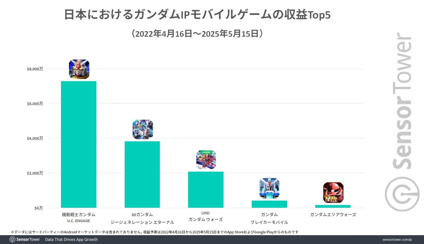 由萬代南夢宮娛樂自 2025 年 4 月開始在手機雙平台推出的《SD鋼彈 G世代 永恆》,不但自發售日當天起就佔上日本 App Store/Google Play 雙平台下載排行榜榜首,在推出短短一個月時間內,更創下超過 3,500 萬美金的驚人收益。