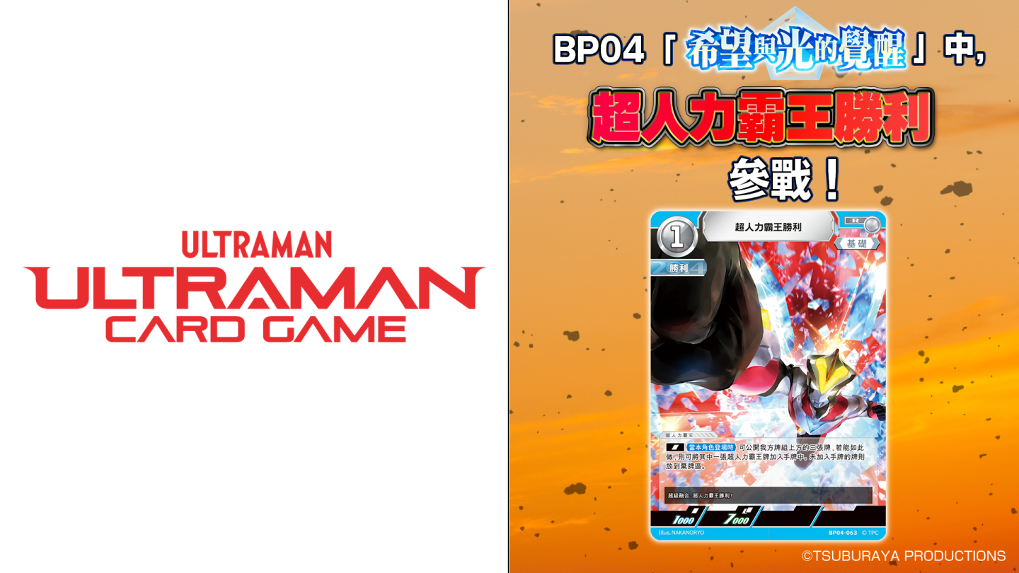 此外,本彈也帶來令人矚目的卡牌亮點——「超人力霸王勝利」首次參戰!這位 2014 年初登場的光之戰士,將以可增加手牌的強力效果支援玩家展開攻勢。搭配專屬插圖與經典背景,收藏價值與戰術功能兼具!