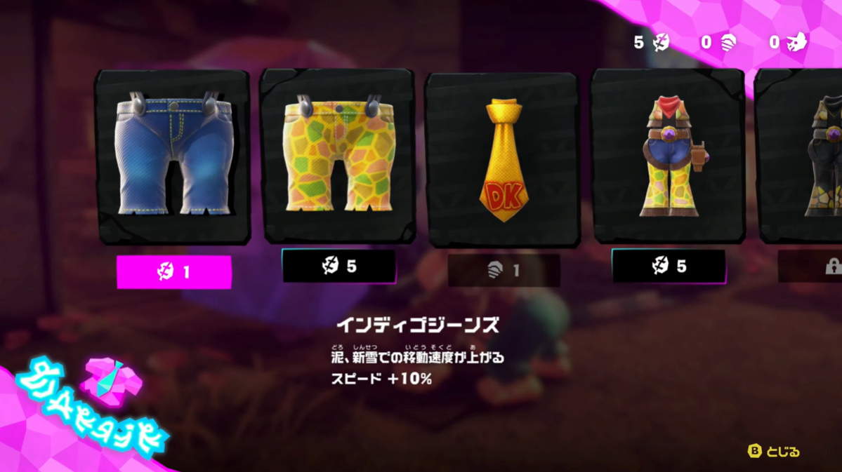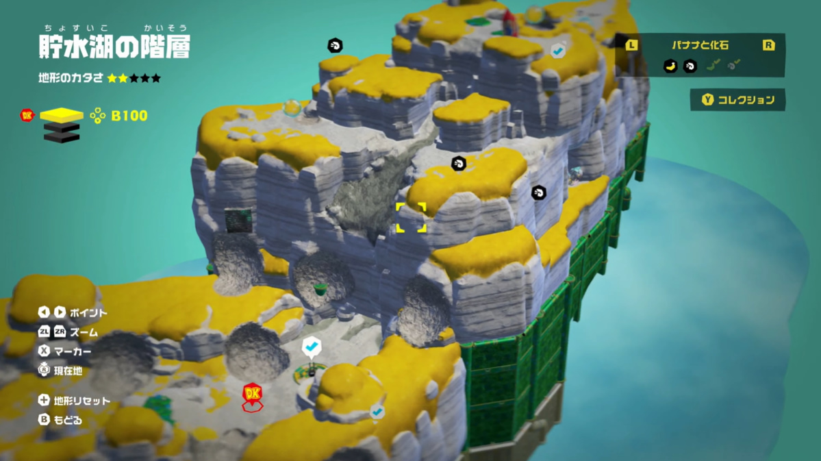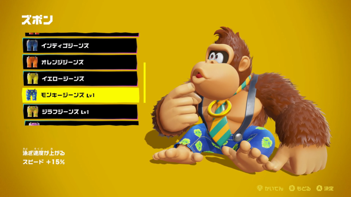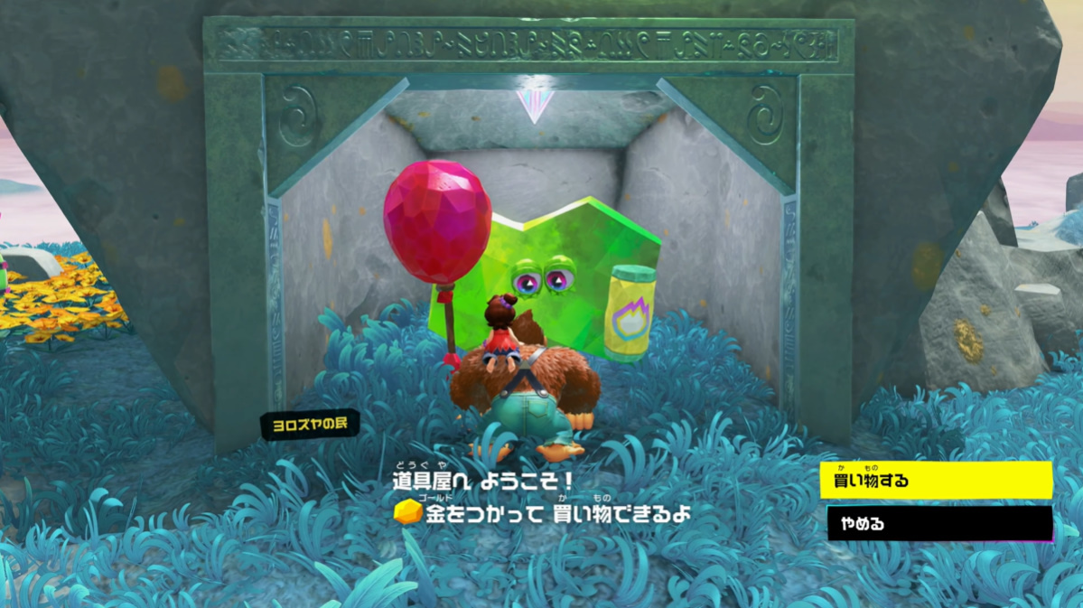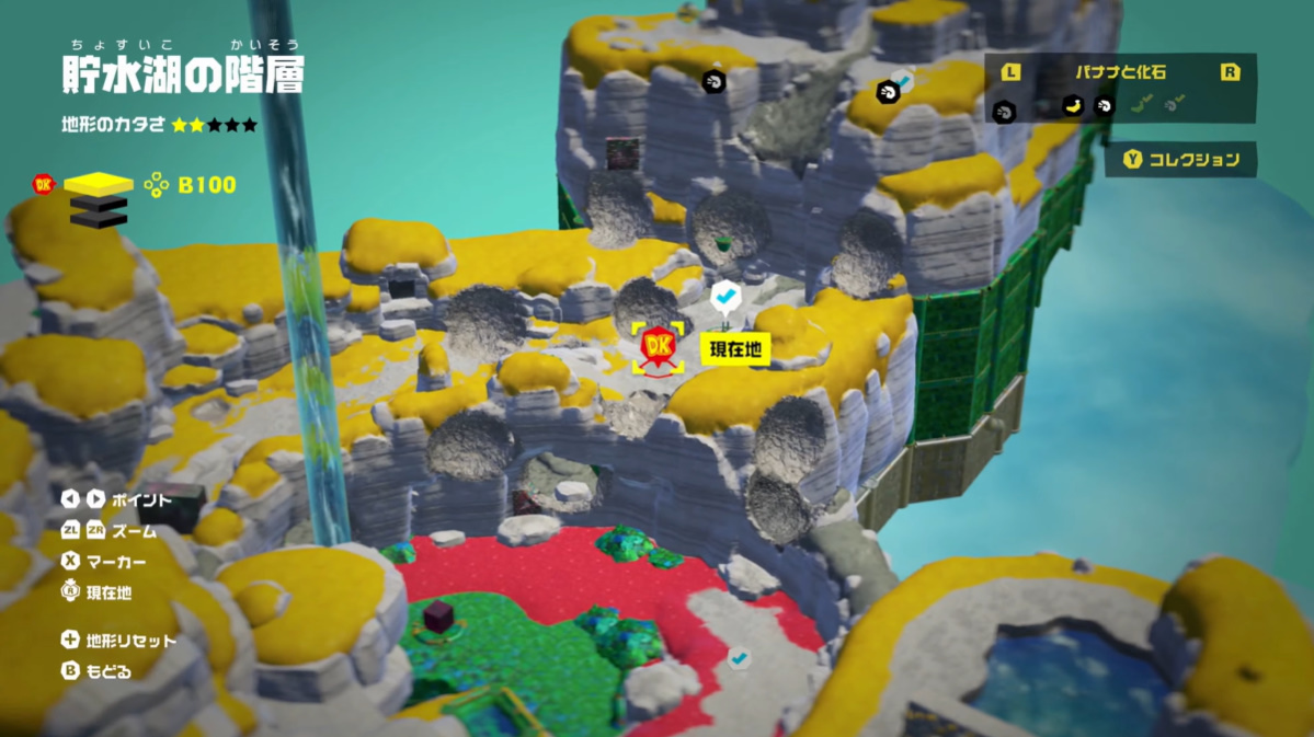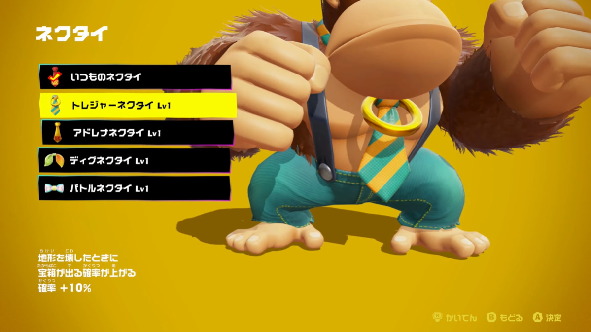 除此之外,遊戲中還會有各種「化石」登場,玩家也可以將收集到的化石拿去店裡進行交換,藉此來取得各種外觀服裝道具。這些外觀服裝道具除了能改變咚奇剛與波琳的外觀外,其中某些服裝還會有各種不同能力加成(如提升咚奇剛游泳速度+15%、延長波琳變身歌聲時間+10%),對玩家的冒險可說是幫助良多。