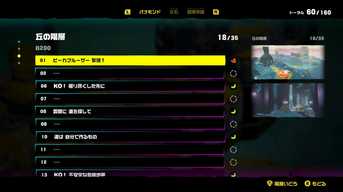 遊戲中,玩家所在的地下世界,會有各式各樣不同的區域等著玩家來挑戰。玩家可以透過介面來確認這些階層的資訊(如化石數量、破壞實績等等)。而遊戲也會提供階層間的快速移動功能,讓玩家能節省移動時間,快速抵達自己想到達的目的地。