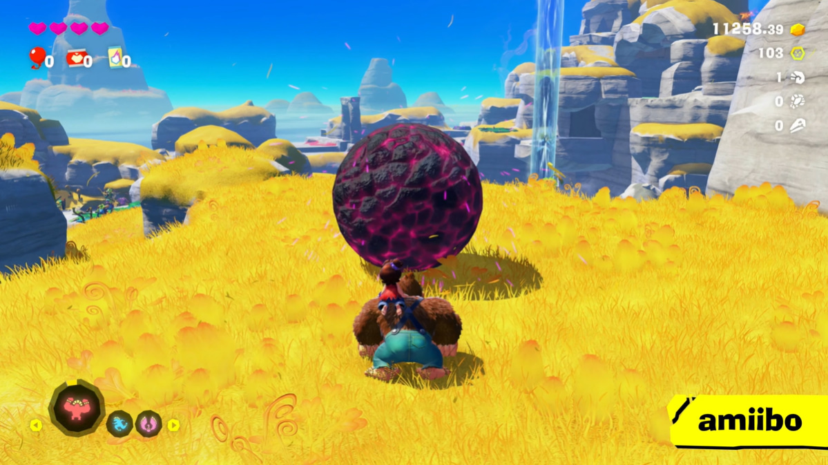 除此之外,玩家如果有買之前的 amiibo,也能在遊戲內讀取使用,如此一來可以取得各種不同材質的球體拿來投擲使用。玩家可以善用這點,來享受遊戲更多的冒險樂趣。