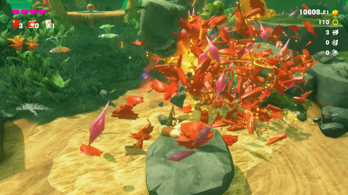 同時,玩家也可以利用咚奇剛與波琳的口哨聲來解鎖關卡機關,藉此找出新的通路或線索。多樣的動作操作,讓這次的咚奇剛冒險更加有趣。