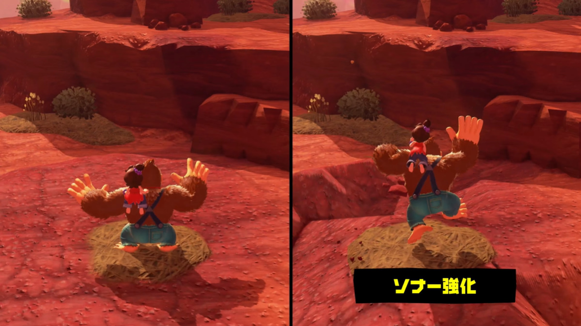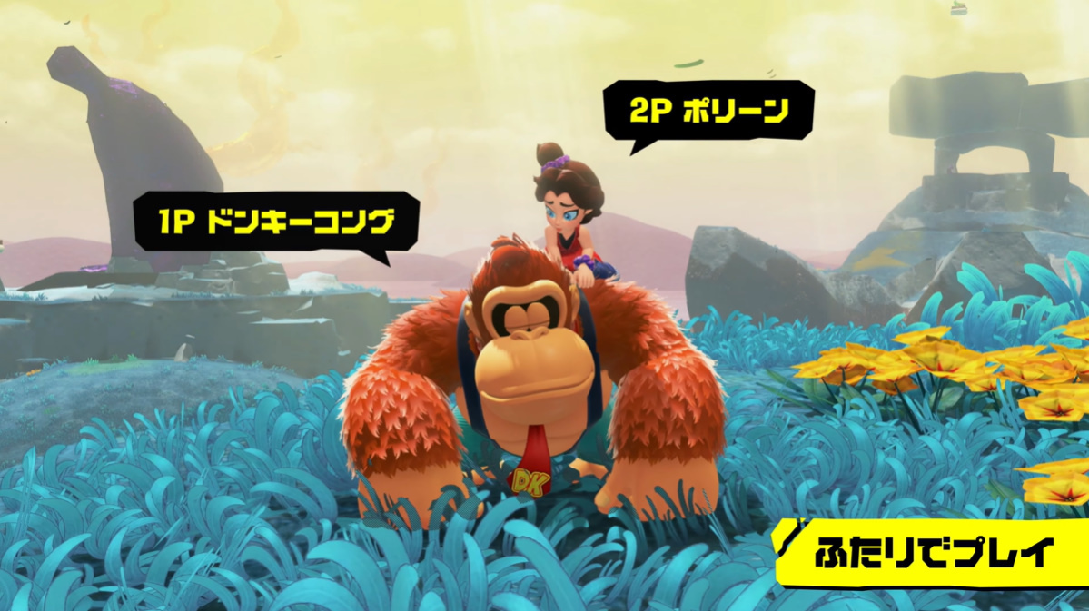 此外,本作除了單人遊玩外,也會支援 Joy-Con 2 搖桿的雙人遊玩。在 Joy-Con 2 搖桿的雙人遊玩時,會由 1P 操作咚奇剛、2P 操作波琳來進行冒險。