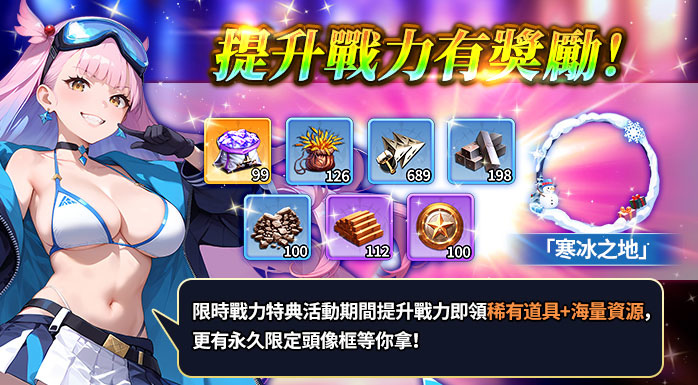 戰力目標達成!限時戰力特典活動期間提升戰力即領開服限定頭像框+海量資源!
