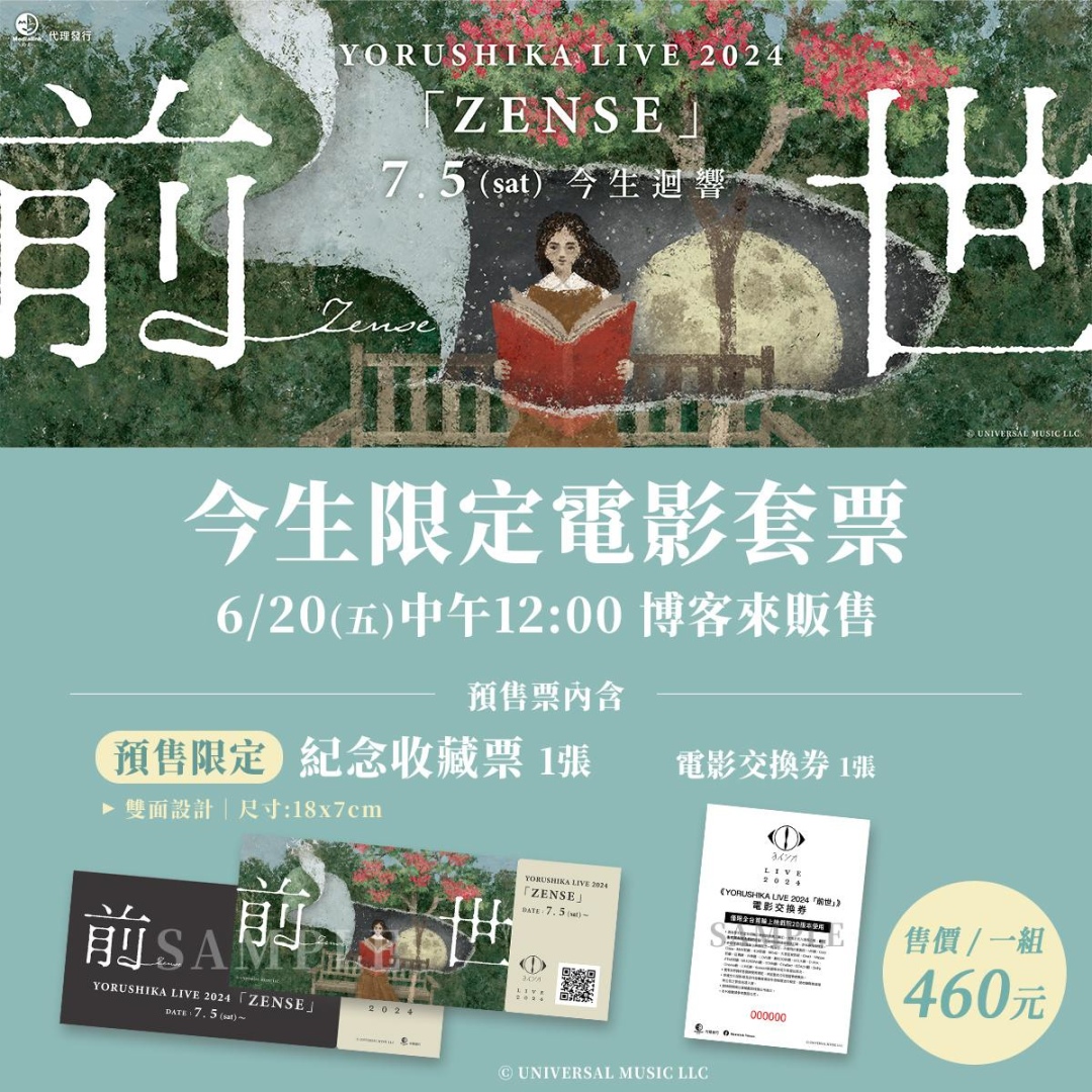 片商將於6月20日在博客來搶先推出《Yorushika LIVE 2024「前世」》首波電影預售票,內含預售限定紀念收藏票卡以及交換券乙張,上述兩部演唱會電影的預售消息請關注 MEDIALINK 台灣粉絲專頁。
