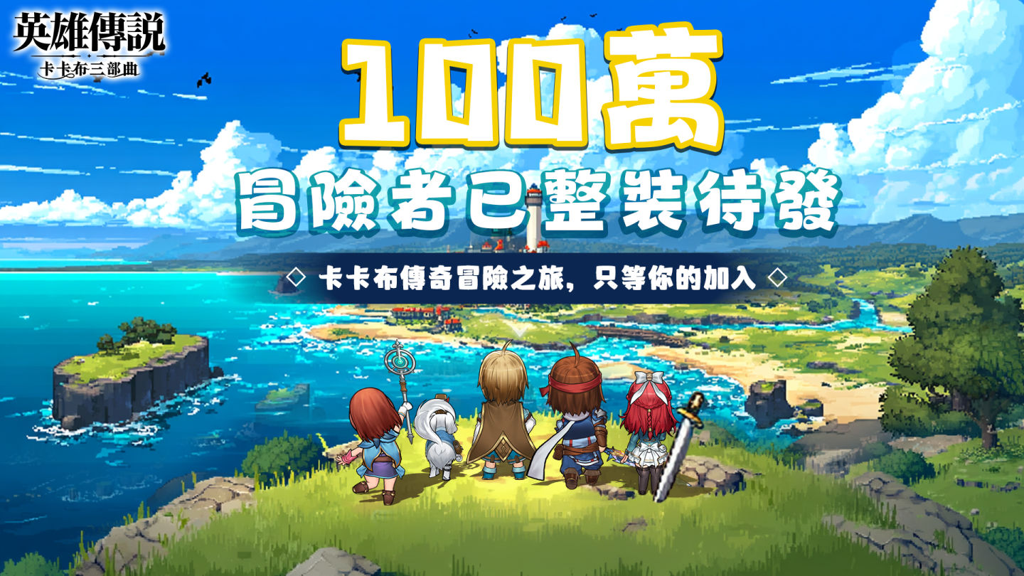 《英雄傳說:卡卡布三部曲》是在《英雄傳說》30 週年之際,重製推出的正統日式王道冒險 RPG!官方近日公佈遊戲的事前預約人數突破 100 萬,全服獎勵全部解鎖!登入遊戲即可領取白髮預言寶箱、英雄招募×5、治療藥水(小)×5、提神藥水(小)×5、中級武器召喚券×1、中級鎧甲召喚券×1 等豐富豪禮!