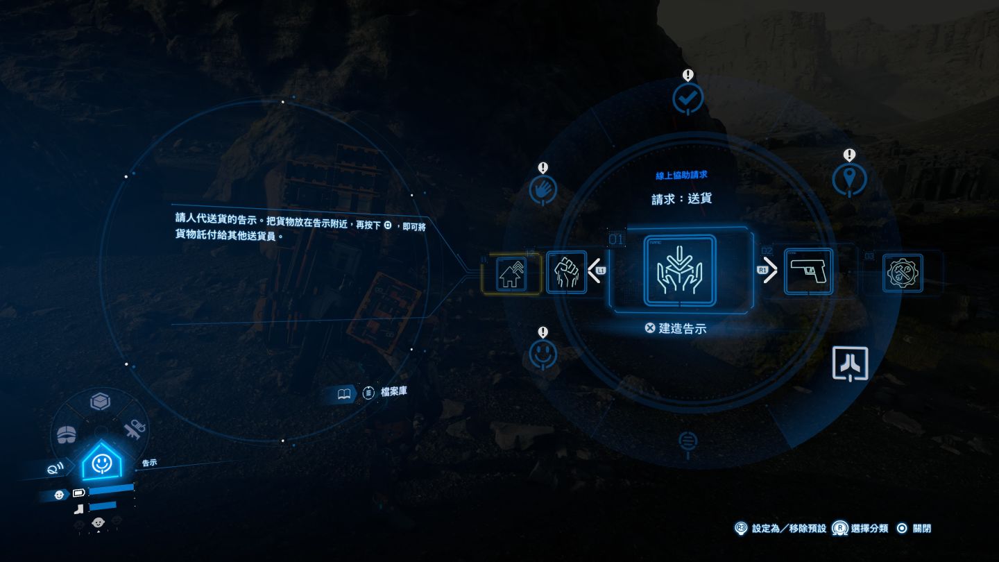 從送貨體驗上顯然能感受到了開若爾科技的進步,大多時候連上網路根本就少了一代的孤寂感?或許可能有人會這樣想,但其實只是孤寂但不至於無力,你反而在開若爾網路的訊號範圍內與外深刻感受「連結」的好處之餘,還有更多時間與空間去細細探討山姆這趟的旅程意義,以及他遇到了什麼新的課題要克服,而這一切其實又與前作緊密連結,編輯在遊玩的時候還是會不時回想一代的體驗經歷,還有你更可以注意小島秀夫這次在劇情過場的「鏡頭語言」,記得在遇到劇情選項時,大方的反骨一點,因為小島也知道你可能會這麼做!