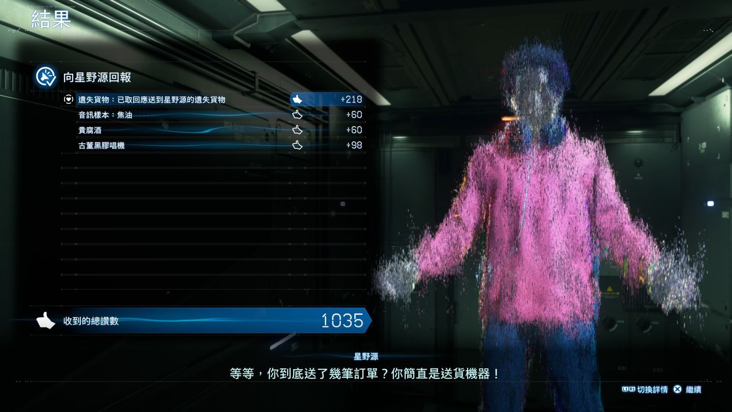 在移動基地「DHV 麥哲倫號」上,新成員「偶人」,是僅次於 BB 與玩家相伴的優先順位,日配聲優杉田智和更排遣不少你送貨的孤寂感,何況他還有特殊的戰術用途。其他新成員還有焦油人與他的貓、芮妮、忒明蘿加入之後會更多互動事件。這些夥伴會讓送貨旅途不再只是點到點的移動,而更像是一場有夥伴守望的冒險,跟偶人對話更是編輯每次回到個人間必定要作的事項之一。