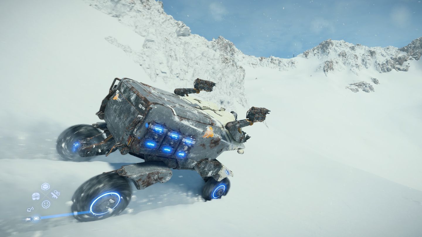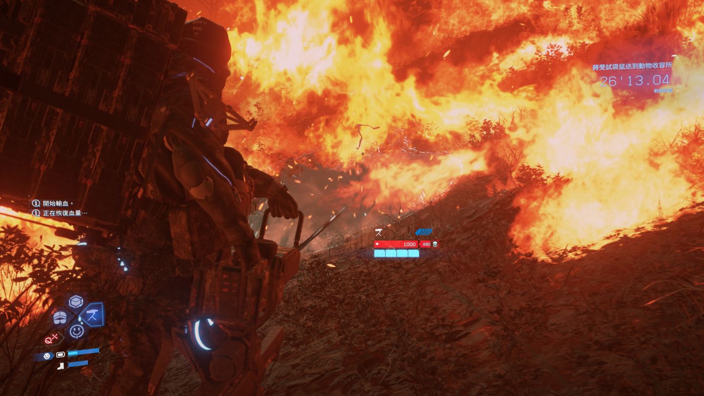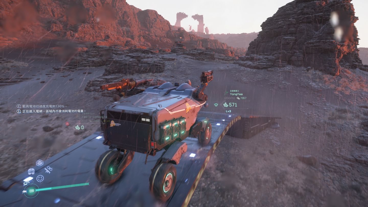 相較一代的美國荒地,Decima 引擎不僅帶來更嘆為觀止的原野地景,還是個會呼吸發怒的動態舞台。在本作送貨的途中,天候變化更加顯著:基礎款有驟然暴雨是 BT 的警訊,天外飛來的火球可能突然點燃森林大火,這次規劃的安全路線,或許在送貨當下並不安全。所謂計畫趕不上變化,幸好地形掃描功能依然實用。