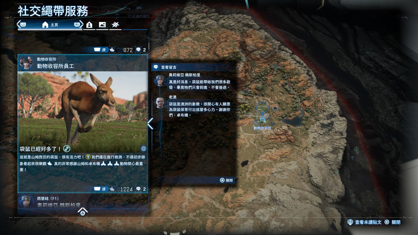「社會繩帶服務」按讚、修建橋樑、留下警告標示這些熟悉的互動都還在。但還可以發出跟其他人的材料需求,NPC 會發出建造需求如同支線任務事件,讓你有更多的事情可以完成。而且也有固定介面能夠像看臉書一樣可以看到許多建設後的樣貌,你也能分享更多照片給其他的「山姆」。
