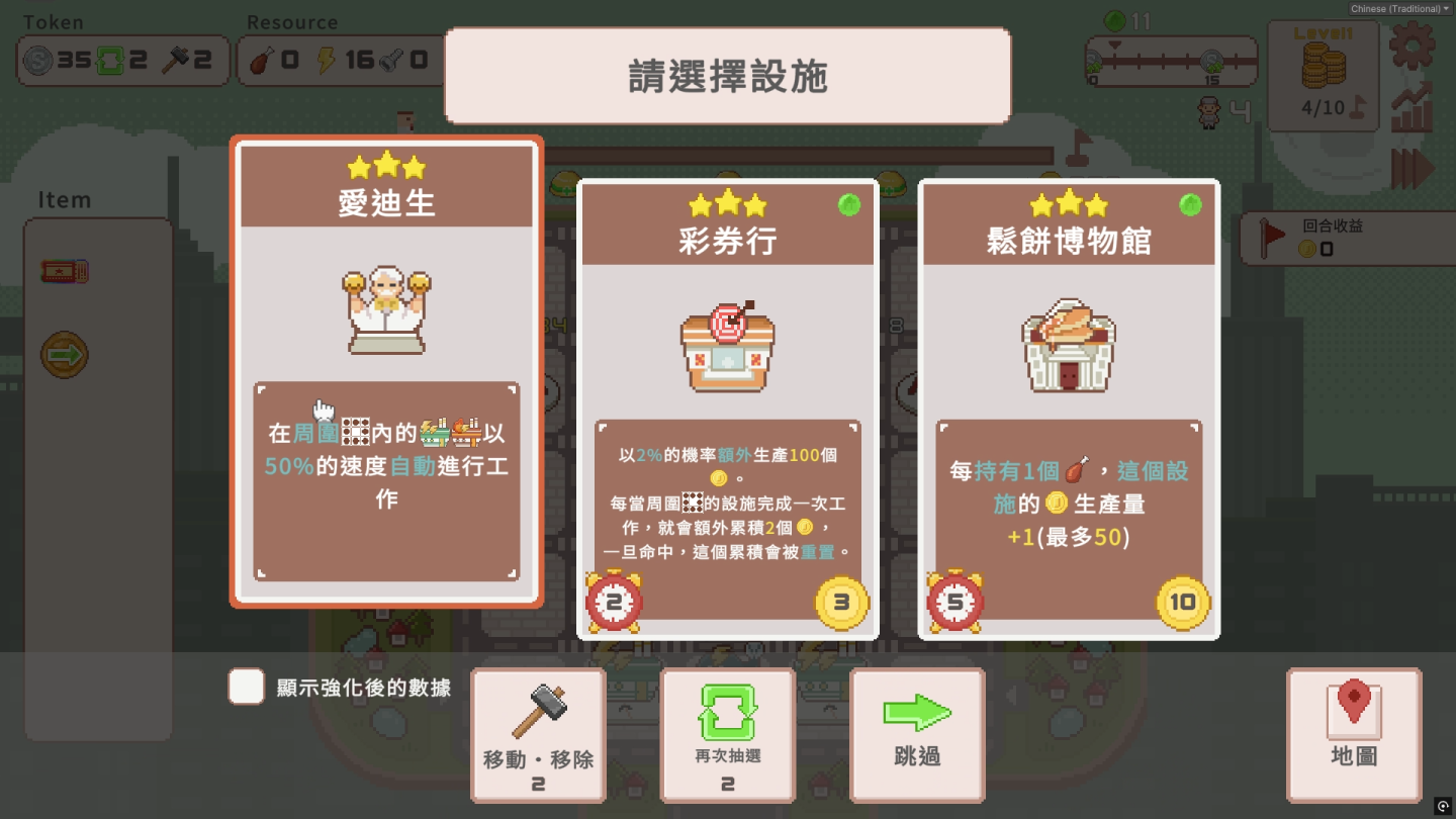 根據設施效果與地圖狀態來決定建造策略,每次選擇都會帶來不同結果。