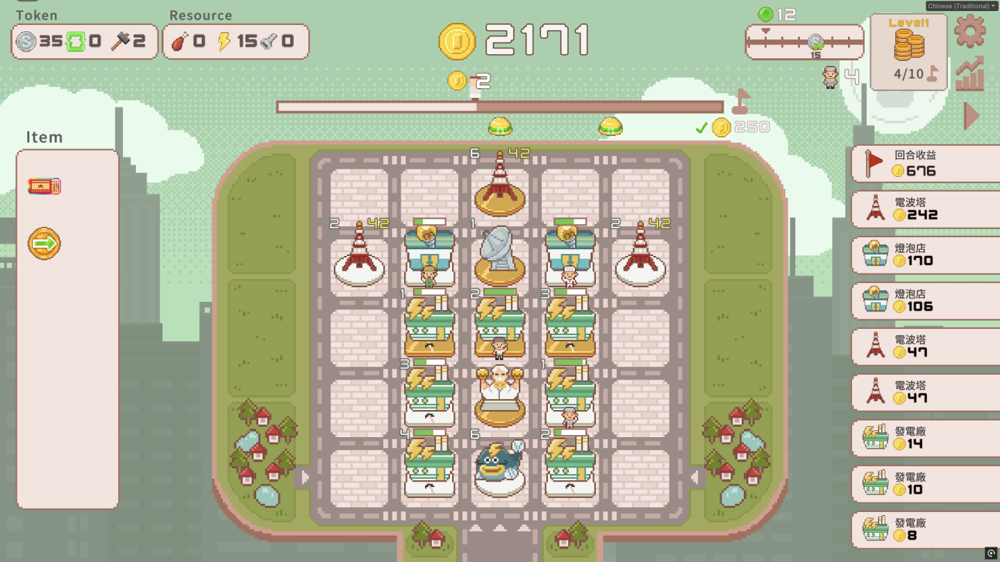 節奏明快,讓人一玩再玩、欲罷不能!玩家只需要從三個設施選項中挑選一個,放到地圖上即可!操作簡單、節奏明快,耐玩度十足,讓人一玩再玩,直到成功破關為止!光看就覺得有趣的遊戲!