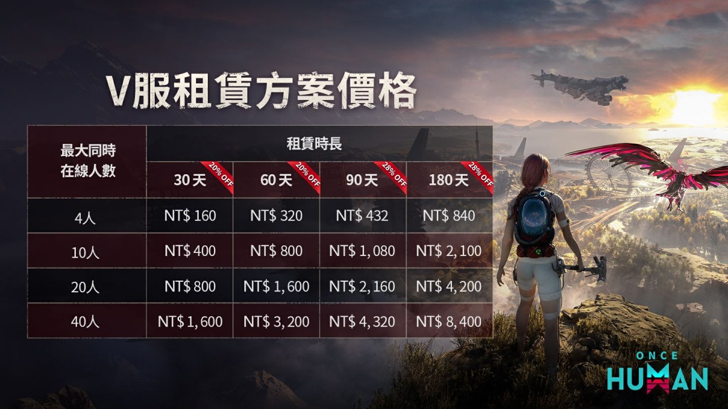 想要創建《Once Human》V 服的玩家,可透過遊戲內的專屬購買頁面完成租賃訂閱。伺服器租賃費用將根據所需的最大線上人數和租用時長有所不同,提供多種組合供玩家靈活選擇。