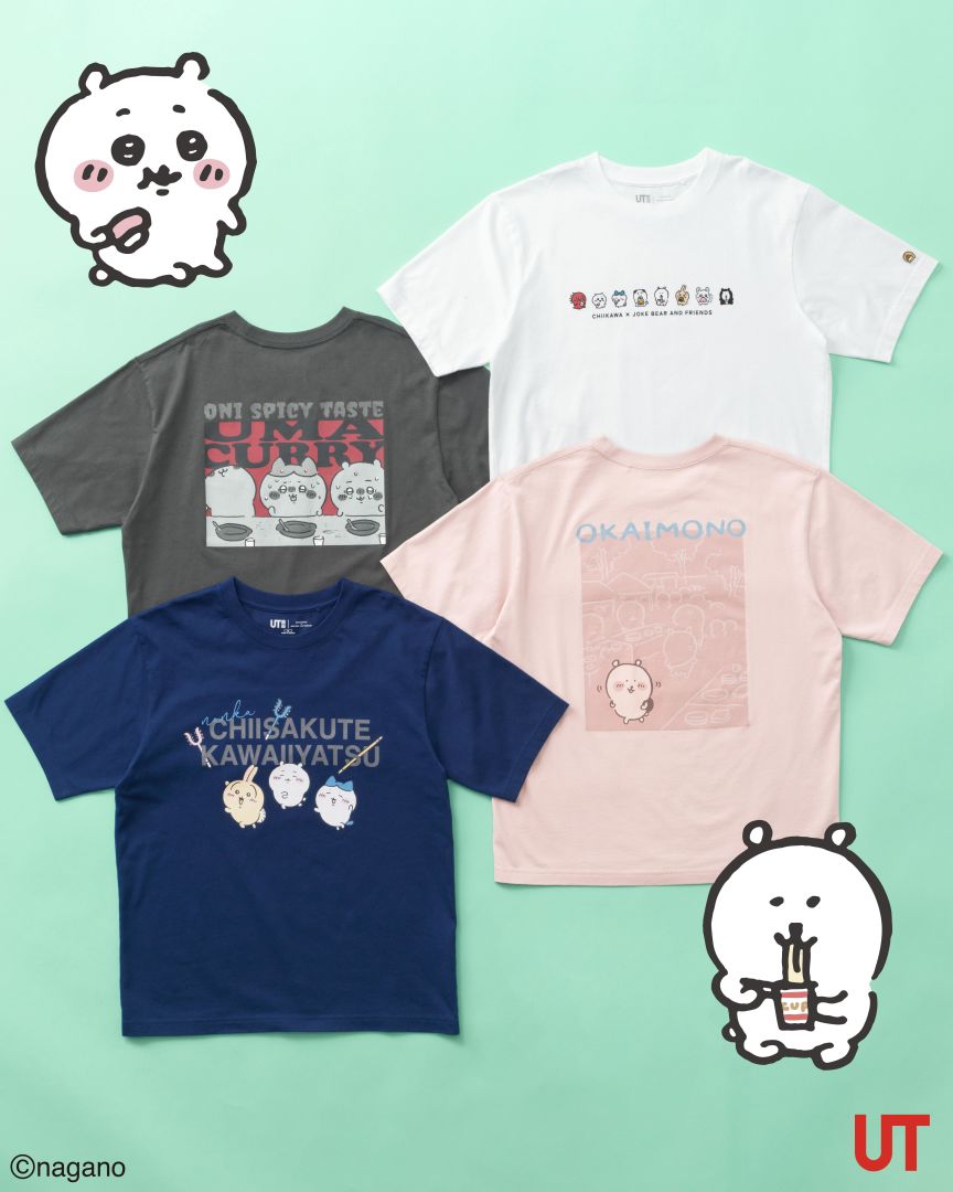 CHIIKAWA 憑藉著其看似軟萌的外表,背後劇情故事巧妙暗喻現實社會情節吸引全球無數粉絲;而 JOKE BEAR 也是廣受消費者歡迎的通訊軟體人氣貼圖作品,兩者在台灣皆擁有居高不下的人氣與關注。本次全新 CHIIKAWA x JOKE BEAR AND FRIENDS UT 系列描繪 CHIIKAWA 、JOKE BEAR 及其夥伴們吃飯、工作等療癒場景,共推出 4 款成人女裝與 4 款童裝T恤,適合全家大小在暑假以親子裝造型共享歡樂出遊時光。
