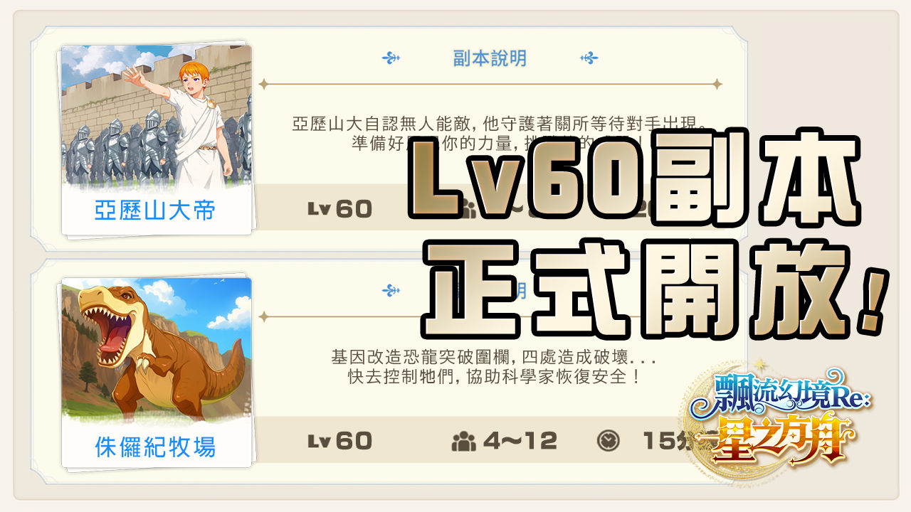 新增 LV.60 活動副本「亞歷山大帝」、「侏儸紀牧場」