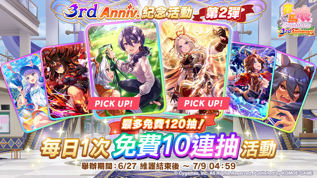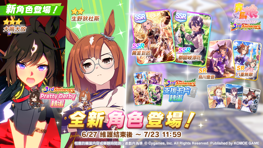 由日本 Cygames 開發、小萌科技代理的養成手機遊戲《賽馬娘Pretty Derby》繁體中文版於 6 月 27 日正式營運 3 週年,並開始週年紀念活動。