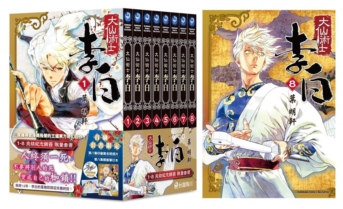 三度榮獲金漫獎殊榮的東方奇幻巨作《大仙術士 李白》,自連載以來以其熱血磅礡的世界觀、詩意結合道術的奇幻設定,以及對「李白」全新詮釋的角色魅力,深受讀者們的熱烈喜愛。歷經 12 年的長期連載,系列最終章《大仙術士 李白 (8)(完)》即將在 2025 漫畫博覽會正式首賣,迎來萬眾矚目的壯闊完結。
