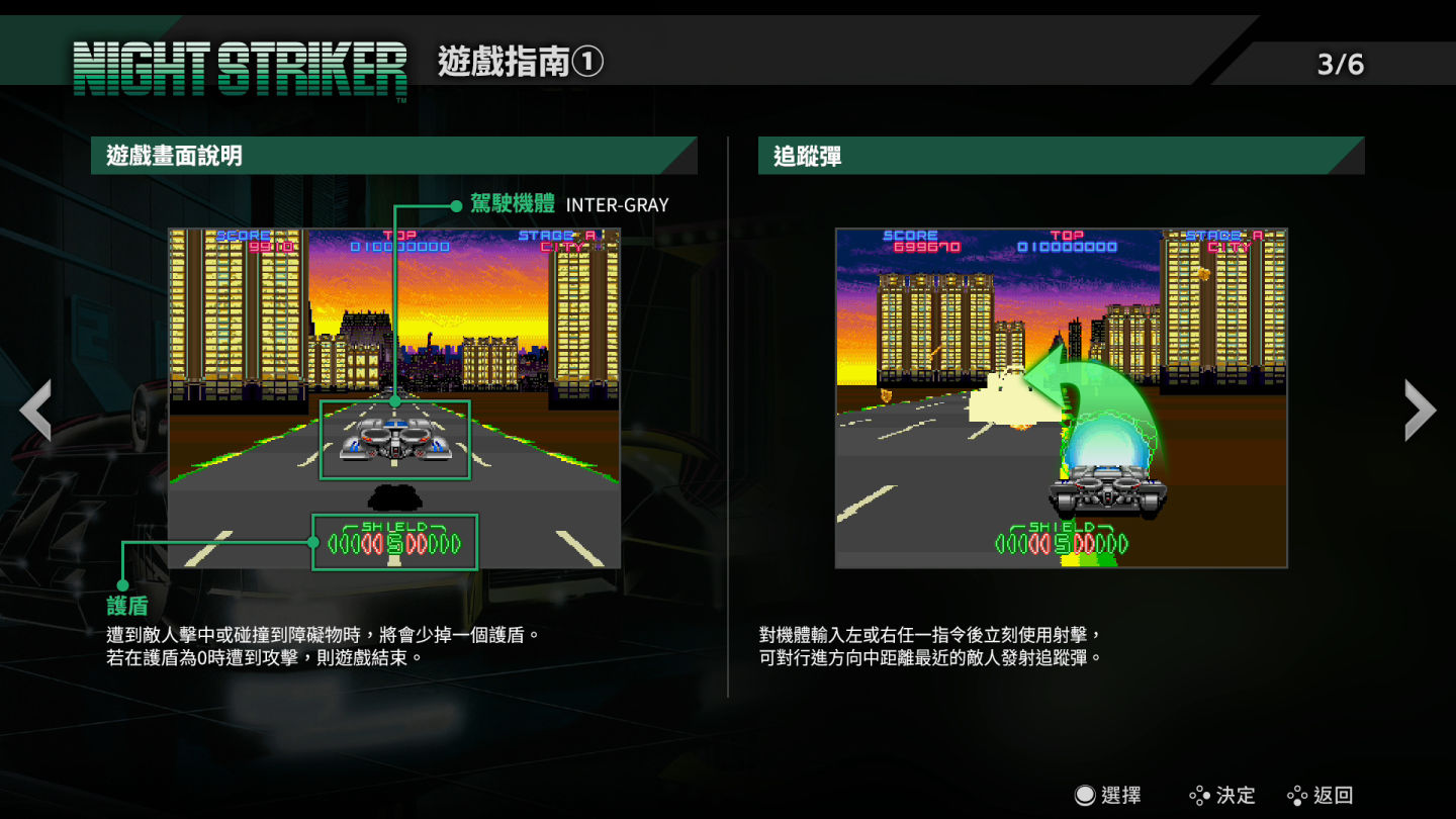 1989 年於街機上發行,採用縱深捲軸的射擊遊戲。成為聯合國特務機關所屬的特別行動部隊,人稱「Night Striker」,駕駛高速戰鬥懸浮機「Inter-Gray」,貫穿霓虹閃爍的未來都市,殲滅邪惡的恐怖組織!