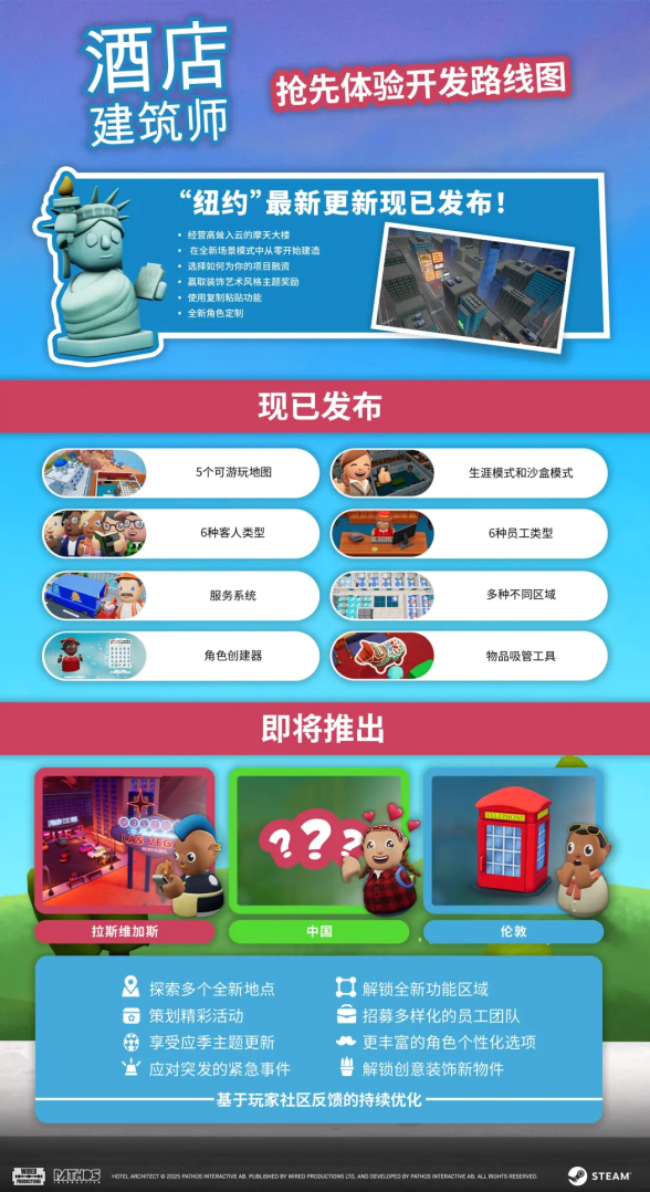 展望未來,官方更新了路線圖,以表明倫敦將是未來在《酒店建築師》中新增的一張地圖!隨著開發的推進,請繼續關注更多細節。