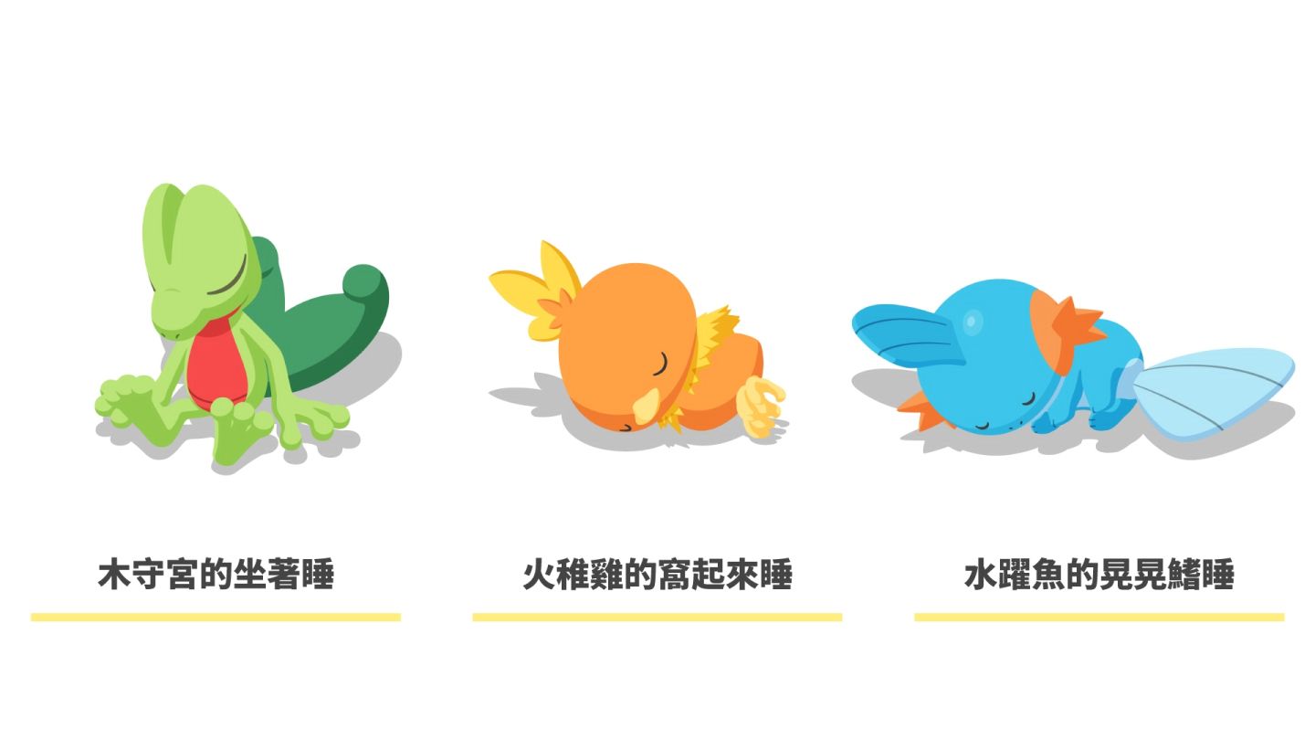 自 7 月 14 日(週一)15:00 起,可以在《Pokémon Sleep》遇見木守宮、火稚雞、水躍魚了!歡迎玩家每天進行睡眠研究,蒐集豐緣地區的寶可夢的睡姿!
