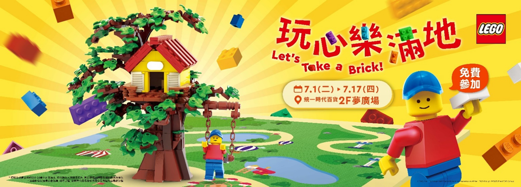 一年一度樂高暑假活動即將登場!今年暑假,台灣樂高®邀請大小朋友放下學業與生活壓力,發揮玩樂精神 Let's Take a BRICK,一起「玩心樂滿地」!於即日起至 8 月 31 日期間,創意奇才小樂將現身全台,輪番在北中南熱門地點與大小朋友見面,用創意拼砌專屬於這個夏天的找樂點地圖!