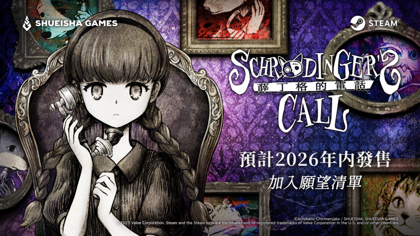 集英社遊戲本日(7/2)宣布由獨立遊戲開發團隊 Acrobatic Chirimenjako 製作的文字冒險遊戲《薛丁格的電話》,將在 Steam 上再次期間限定公開試玩 Demo,一併公開的還有遊戲的新 KV 和 PV。在新 KV 和 PV 中,都有在目前公開的試玩版中還未登場的本篇角色出現。
