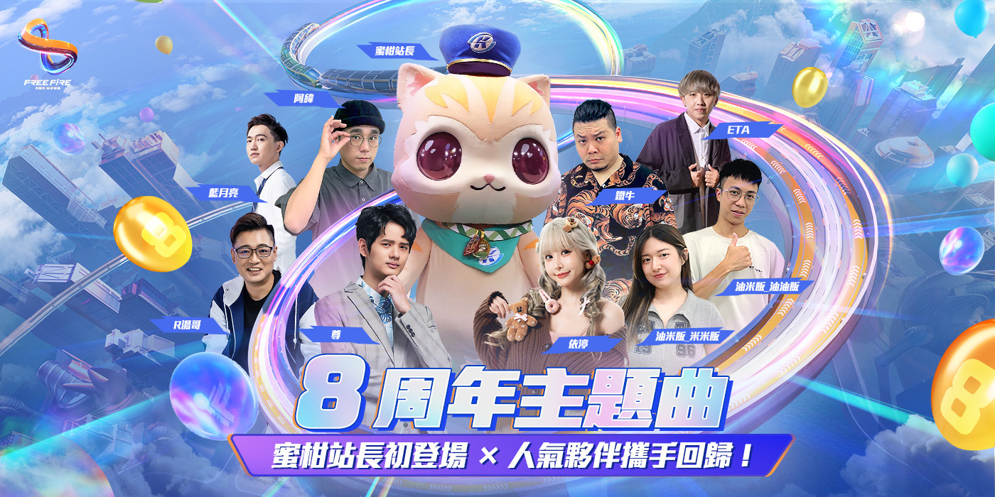 《Garena Free Fire》已陪伴玩家走過八個年頭,為慶祝這個充滿意義的時刻,「Free Fire 8 週年:時光列車」本次以「8 = ∞」為主題,象徵回憶不滅、夥伴常在、未來無限等意義。