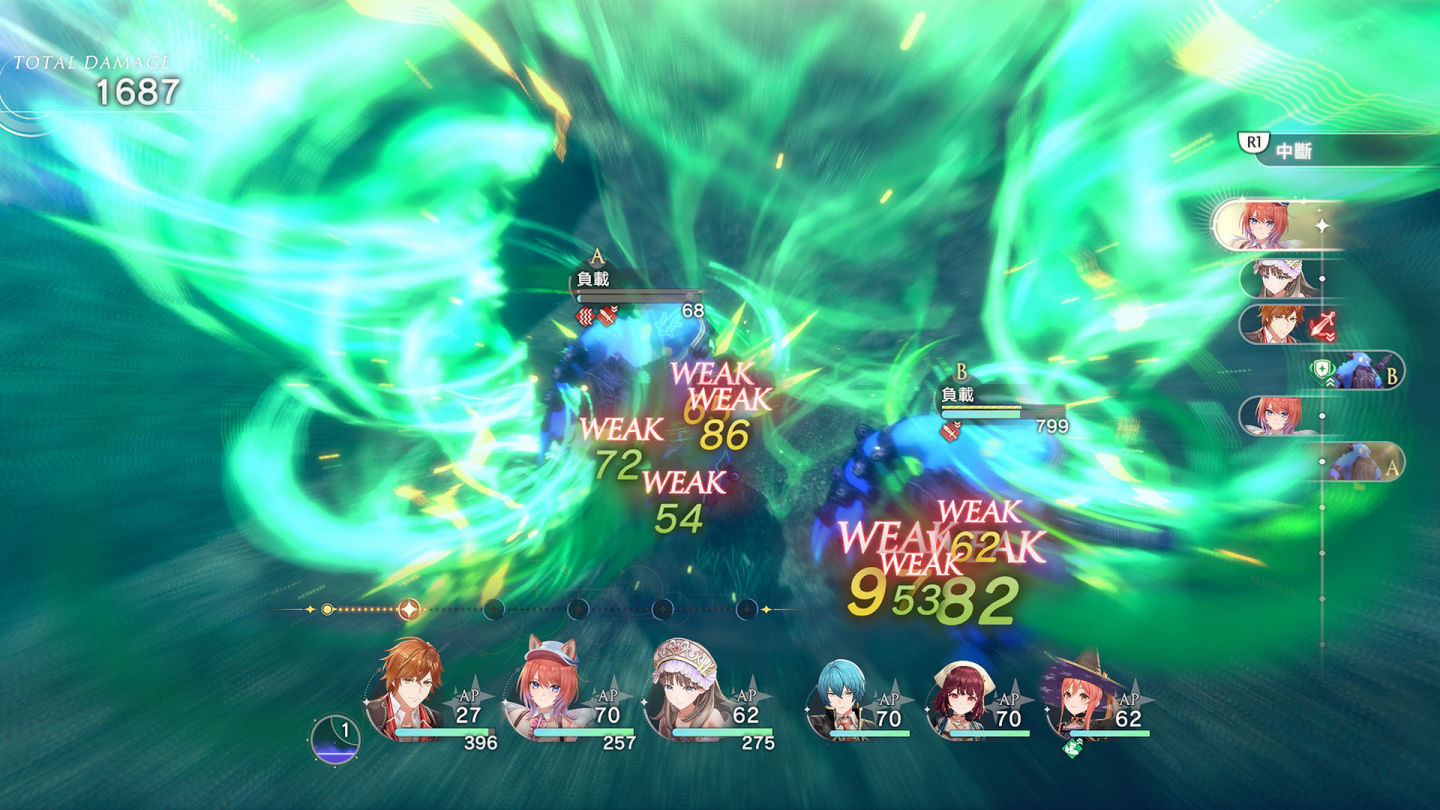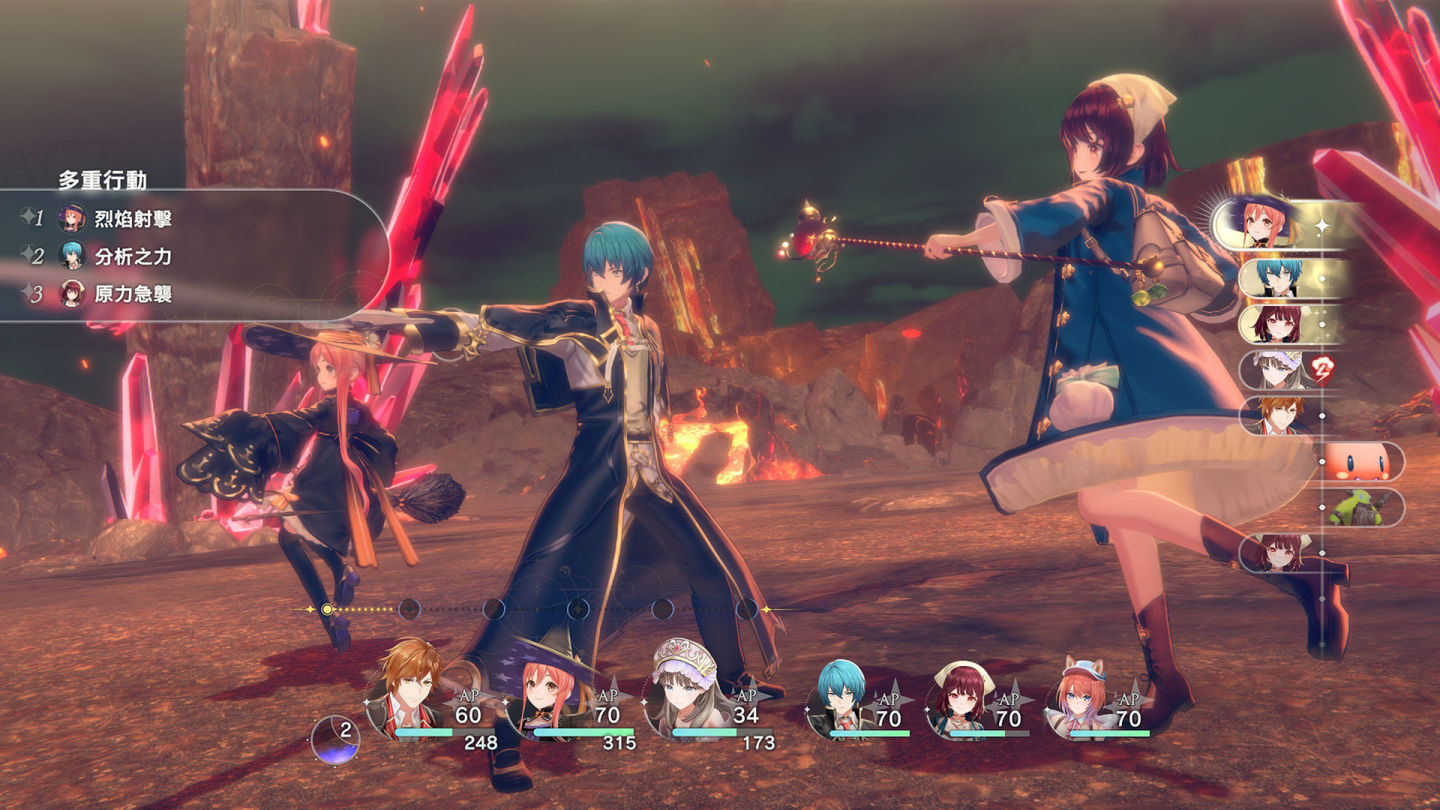 本作採用古典鍊金的指令式回合制戰鬥,玩家需觀察顯示行動順序的時間線,並利用切換前後衛、消耗TP發動「中斷」或「多重行動」等戰術來取得優勢。累積「合作量表」後,還能發動華麗的必殺技「合作爆發」。