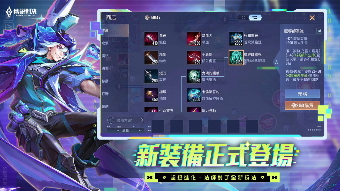 超級傳說日版本同步迎來法師與射手全新裝備登場!包含強化爆發與保命機能的「魔導師罩袍」、「卡倫諾誓約」,以及普攻觸發裝備傷害的「極霜重錘」、物攻保命兼備的「嗜血刃」。同時也針對「雷電戟」、「撒旦之鋒」、「神聖法典」、「邪靈秘錄」多件核心裝備進行平衡調整,為戰場出裝策略帶來全新變化!