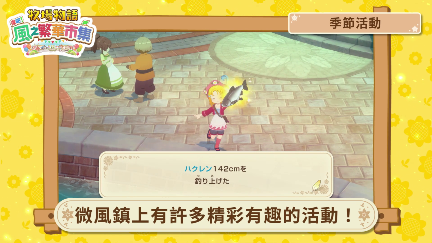 每週一次的市集活動中,玩家可將收成的作物與恩惠販售,吸引顧客,帶動市集與牧場的繁榮。隨著表現越佳,市集將吸引更多客人,並可能吸引新的店鋪進駐,朝著「世界第一大市集」的夢想邁進。