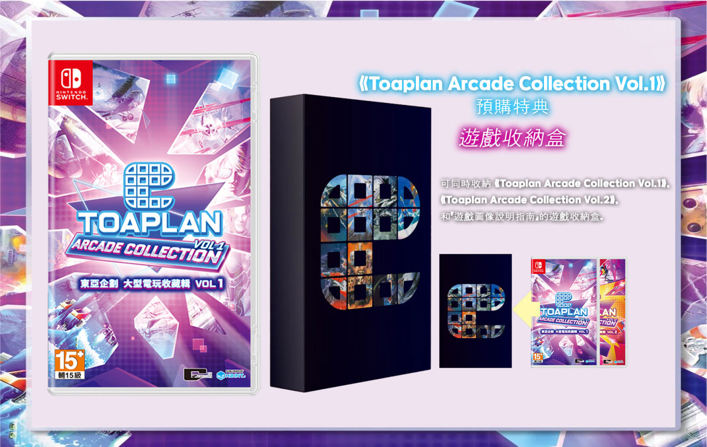 .遊戲收納盒:可同時收納 《Toaplan Arcade Collection Vol.1》、《Toaplan Arcade Collection Vol.2》和「遊戲圖像說明指南」的遊戲收納盒(數量有限)。