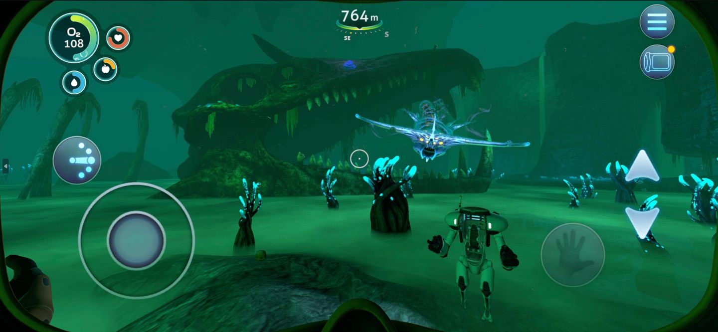 手遊版本支援多種遊戲模式。在基本「生存 Survival」模式下,您需要管理水、營養物質和氧氣才能繼續探索;而在「自由 Freedom」或「創造 Creative」模式下,您可以更加自由地探索水下世界,無需管理資源。