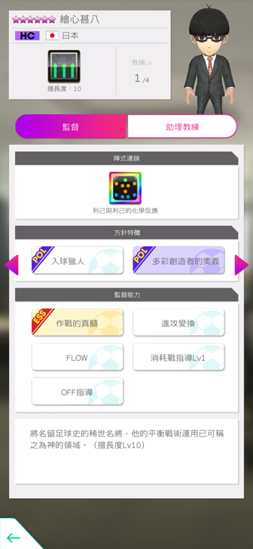 《藍色監獄》聯動活動,新★6 監督「繪心甚八」登場!可透過期間內特別任務「進行 10 場球賽」獲得。新★6 監督「繪心甚八」,持有編組《藍色監獄》聯動球員即可得到增強的陣式連鎖「利己與利己的化學反應」,以及戰術擅長度 Lv10,還擅長使用平衡戰術,更持有可依戰況讓設定為 OFKM 及 DFKM 的球員能力提升的監督能力「FLOW」。