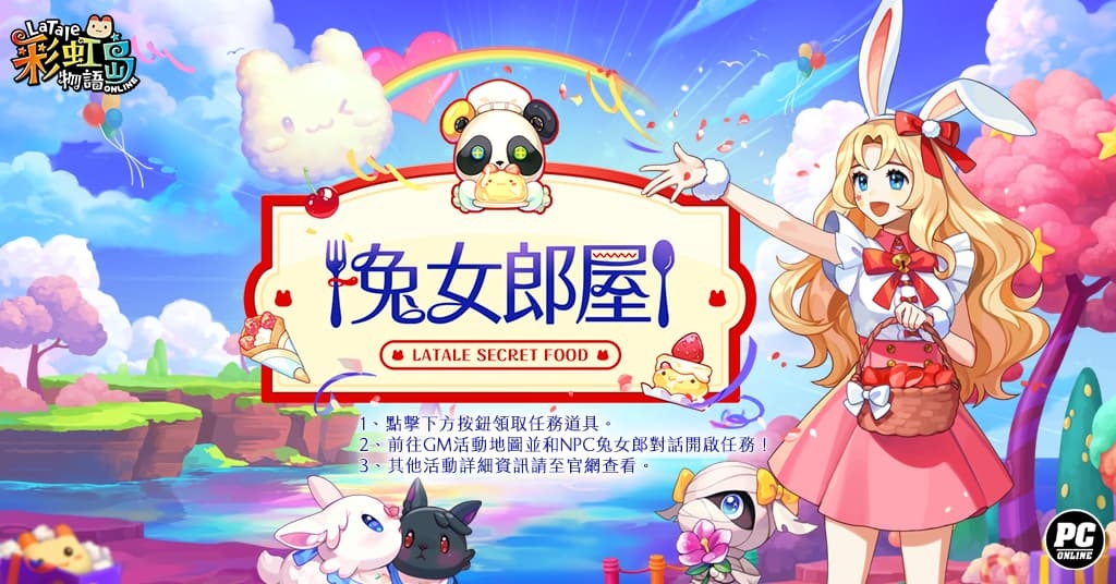 歡慶改版到來,除對應主線故事的豐富兌獎活動外,以料理為主題元素的「兔女郎屋」活動也同步開跑囉!活動期間玩家每日登入、完成指定任務、挑戰皆可獲得對應的獎勵虛寶,冒險家可以獲得「【活動】最新寵物箱子」「【活動】傳奇技能跳過券1.2」、「【活動】寵物永久制轉換工具」、「【活動】GM Super Power技能學習書(30日_」......等各種虛寶,趕緊登入遊戲開始享受輕鬆可愛的遊戲時光與福利好康吧!